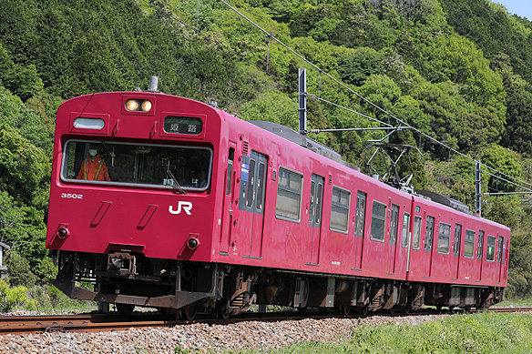 The 103-3500 series entered revenue service with the opening of the electrified section of the Bantan Line between Himeji and Teramae in 1998. As of today, they continue to operate on local services along the Bantan Line. |